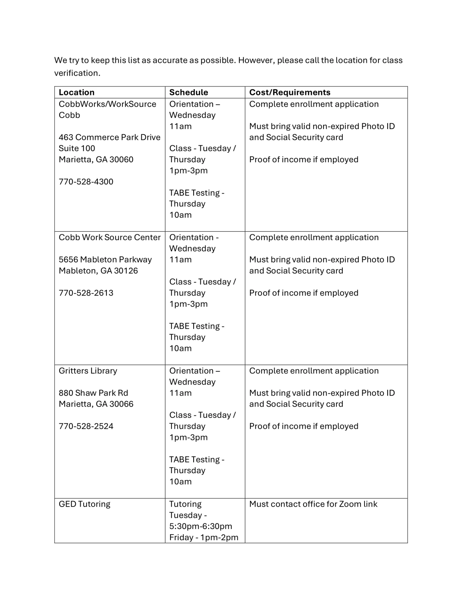 Refer to the information below regarding GED testing in Cobb County. We try to keep all information up to date but please contact Cobb Adult Education Center or go to www.cobbk12.org/adulted for complete test information.