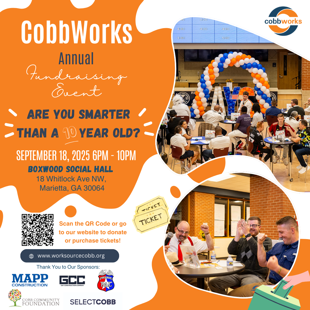 The big day is almost here! If you haven't gotten your tickets yet, it's not too late—grab yours today by scanning the QR code or visiting our website. Join us at Boxwood Social Hall, 18 Whitlock Ave NW, Marietta, GA 30064, for a thrilling evening of trivia and fun at our annual Are You Smarter Than a 10-Year-Old fundraiser on Thursday, September 18, 2025, at 6 p.m. We'll be raising funds to combat poverty through education, training, and employment initiatives. Enjoy raffles, a live auction, fantastic prizes, and of course, an exciting trivia competition—all while making a lasting impact. Don't miss it!